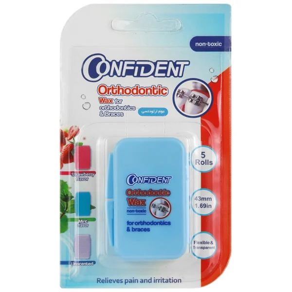 و بدون ایجاد حساسیت می باشد. استفاده از موم ارتودنسی ورقه ای کانفیدنت، درد و ناراحتی ناشی از براکتها و سیمهای ارتودنسی را بهطور قابلتوجهی کاهش میدهد.